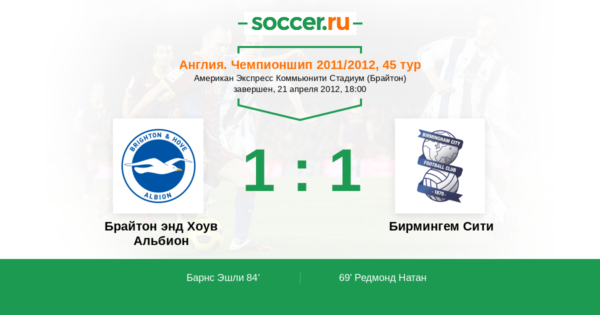 Брайтон энд Хоув Альбион - Бирмингем Сити: обзор матча 21 апреля 2012