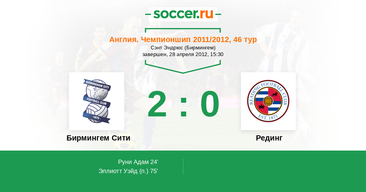 Бирмингем Сити - Рединг: обзор матча 28 апреля 2012