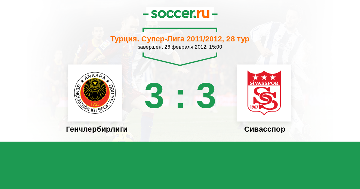 Генчлербирлиги - Сивасспор: обзор матча 26 февраля 2012