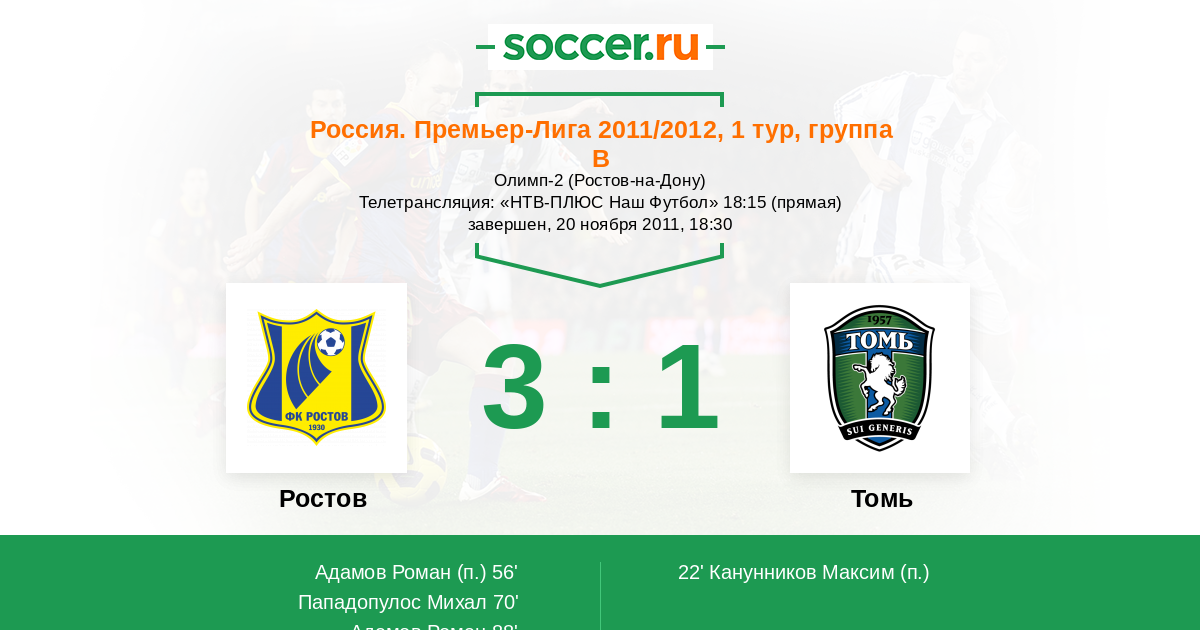 Ростов - Томь: обзор матча 20 ноября 2011