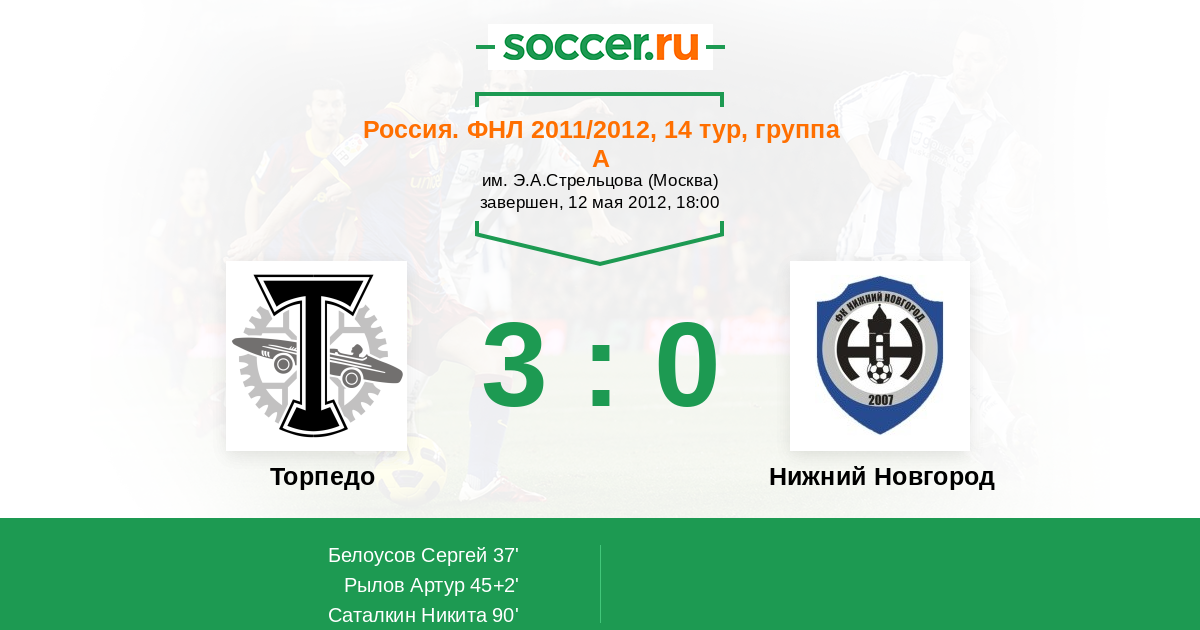 Торпедо - Нижний Новгород: обзор матча 12 мая 2012