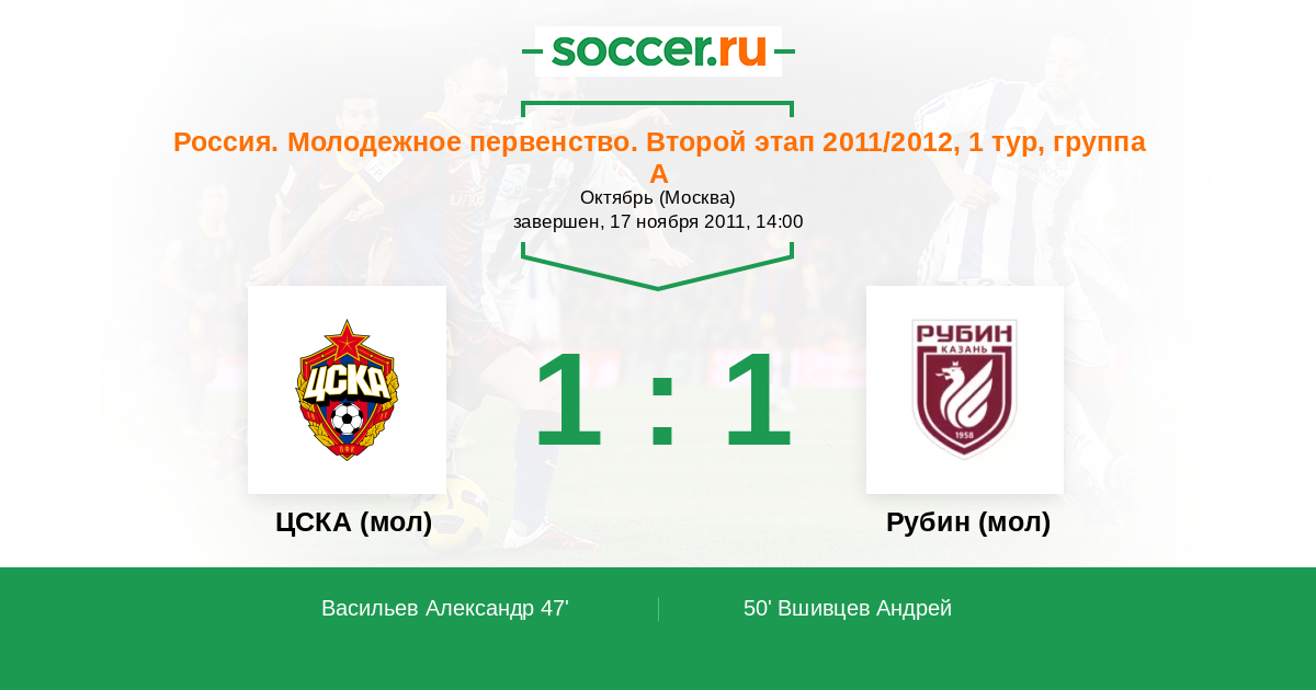 ЦСКА (мол) - Рубин (мол): обзор матча 17 ноября 2011