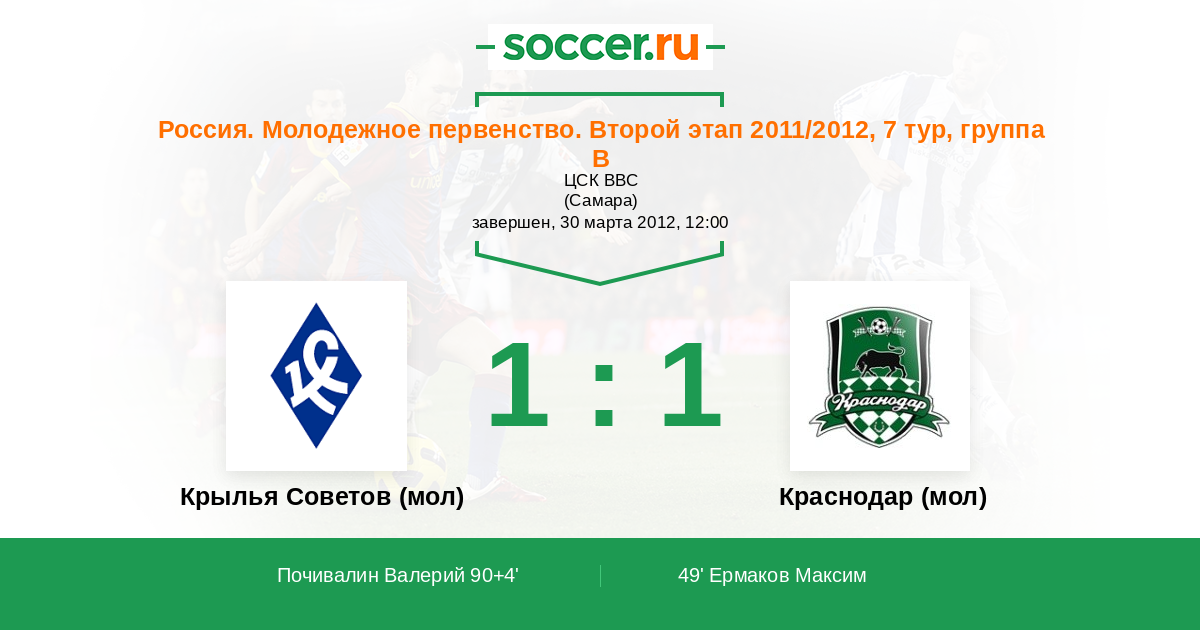 Крылья Советов (мол) - Краснодар (мол): обзор матча 30 марта 2012