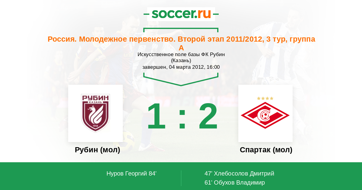 Рубин (мол) - Спартак (мол): обзор матча 4 марта 2012