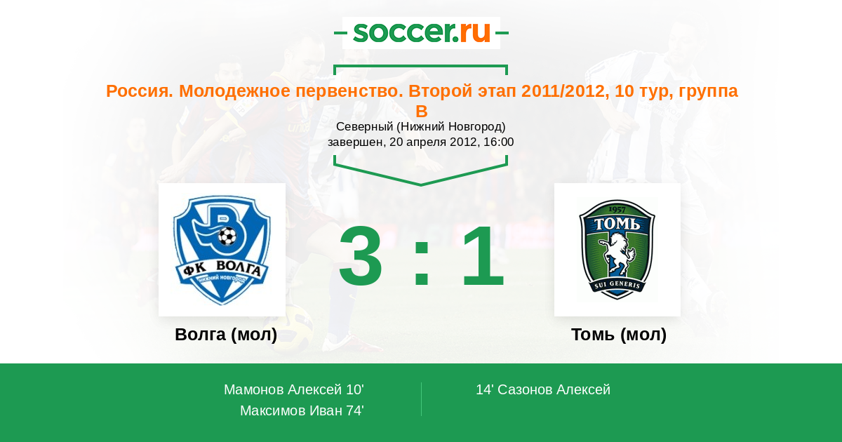 Волга (мол) - Томь (мол): обзор матча 20 апреля 2012