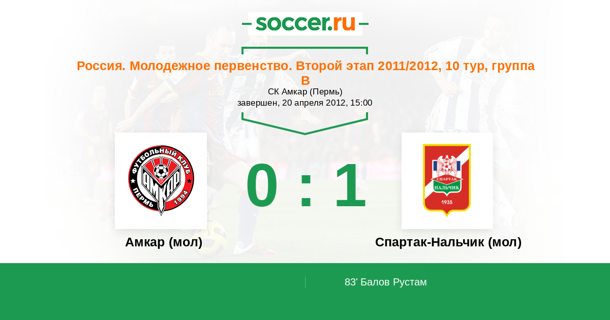 Амкар (мол) - Спартак-Нальчик (мол): обзор матча 20 апреля 2012