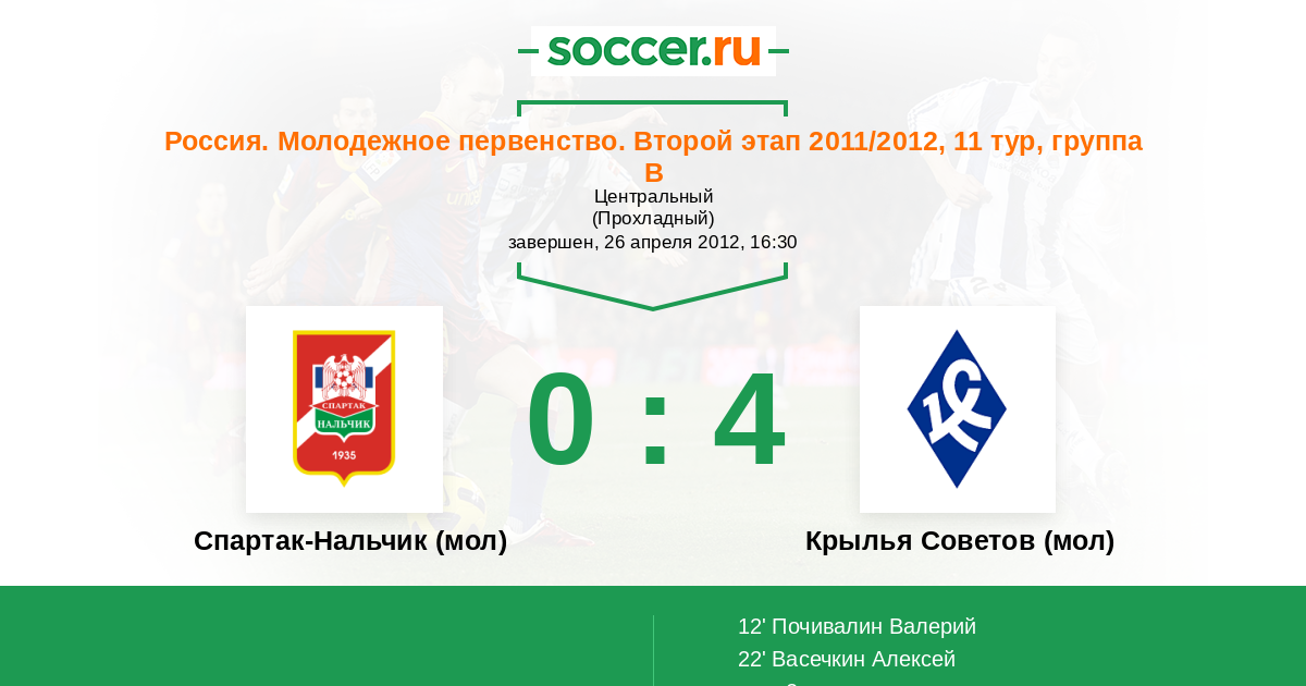 Спартак-Нальчик (мол) - Крылья Советов (мол): обзор матча 26 апреля 2012