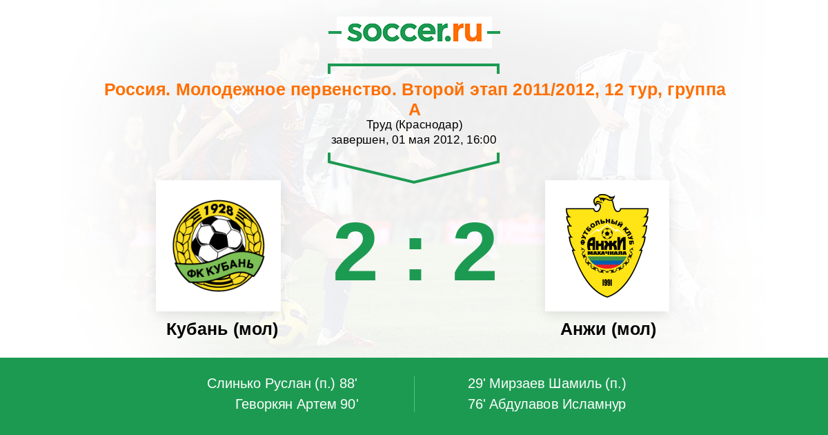 Кубань (мол) - Анжи (мол): обзор матча 1 мая 2012
