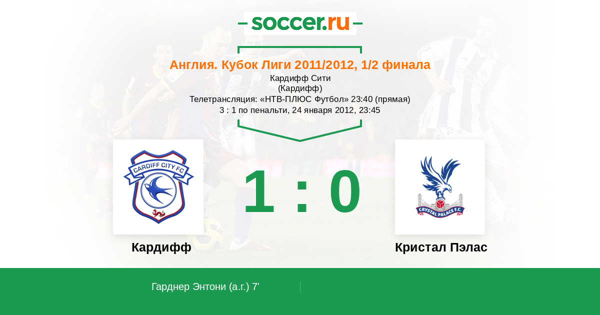 Кардифф, Кардифф Сити Телетрансляция: "НТВ-ПЛЮС Футбол" 23:40 (прямая)