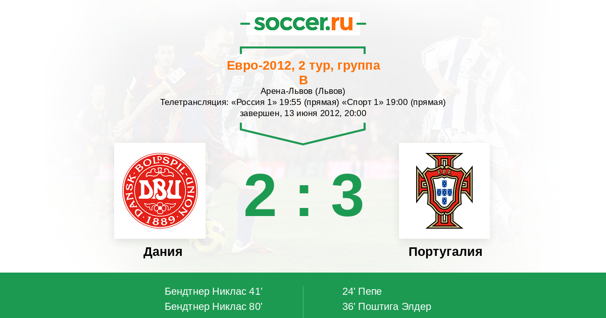 Дания - Португалия: обзор матча 13 июня 2012