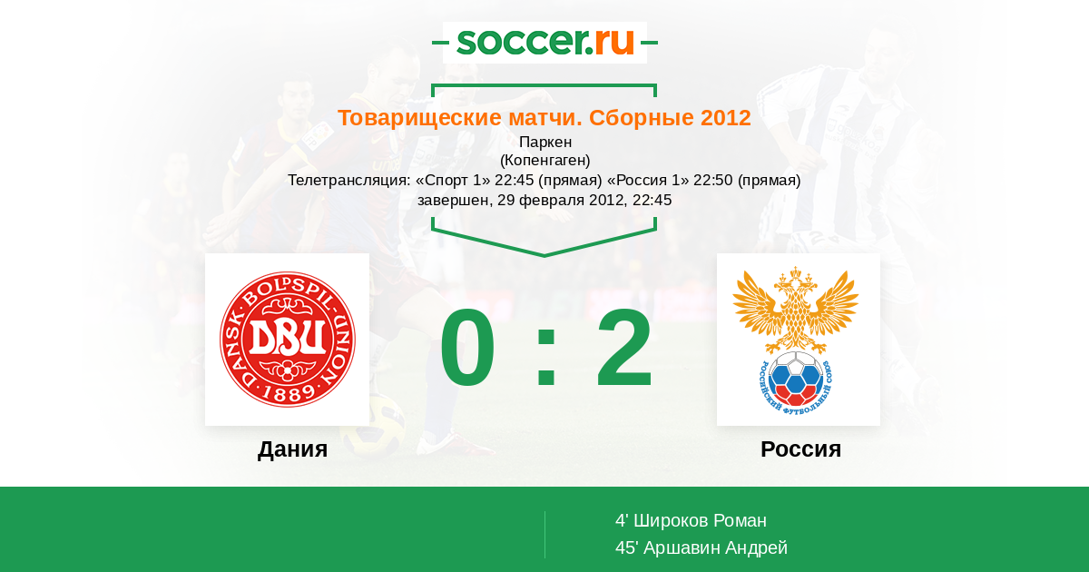 Дания - Россия: обзор матча 29 февраля 2012
