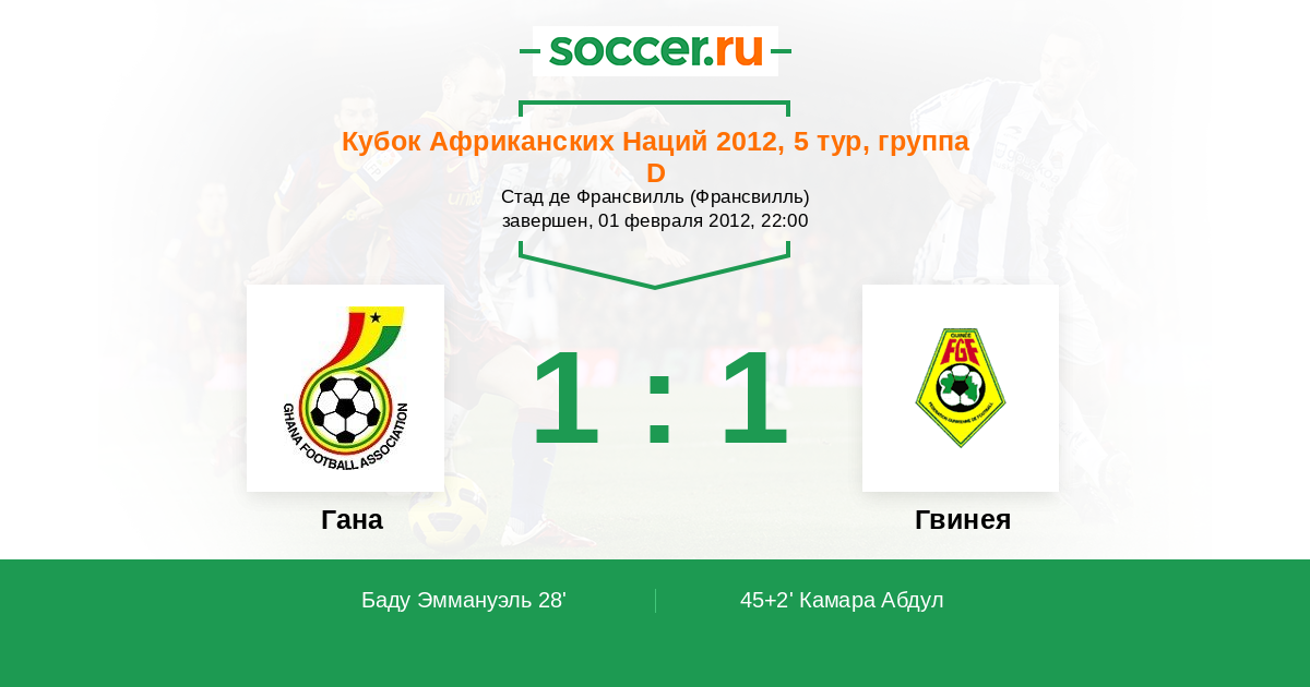Гана - Гвинея: обзор матча 1 февраля 2012