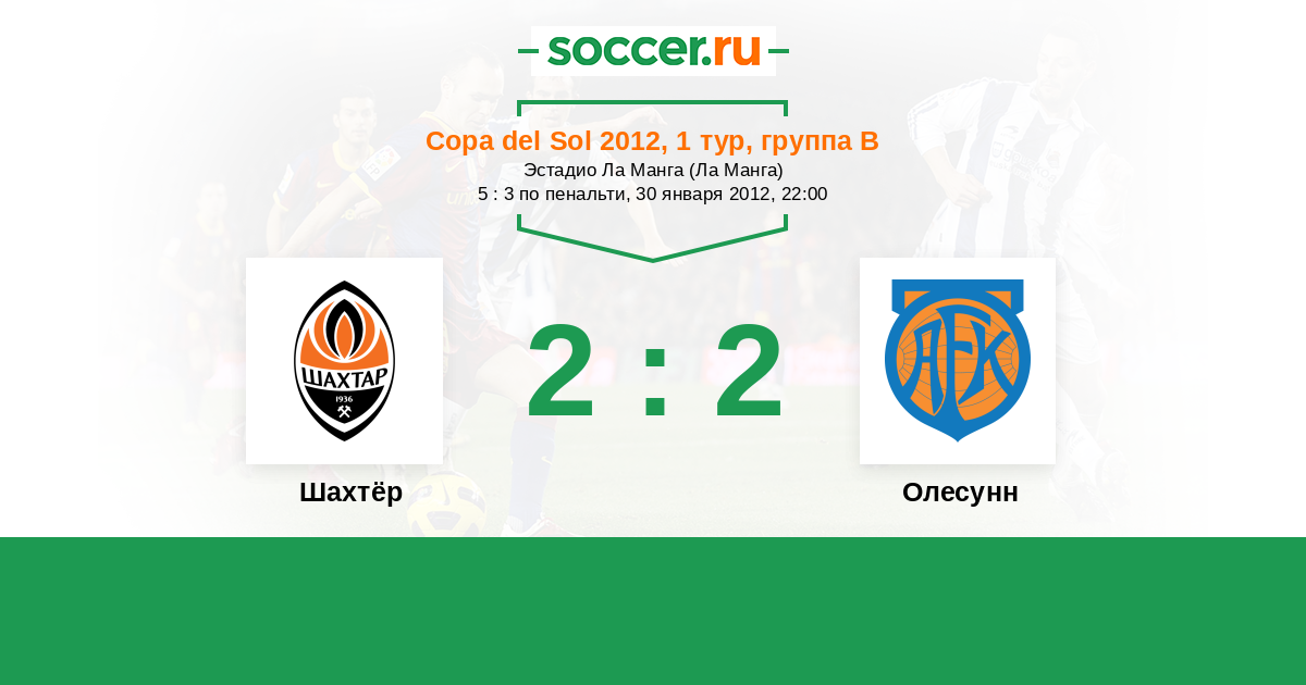 Шахтёр - Олесунн: обзор матча 30 января 2012