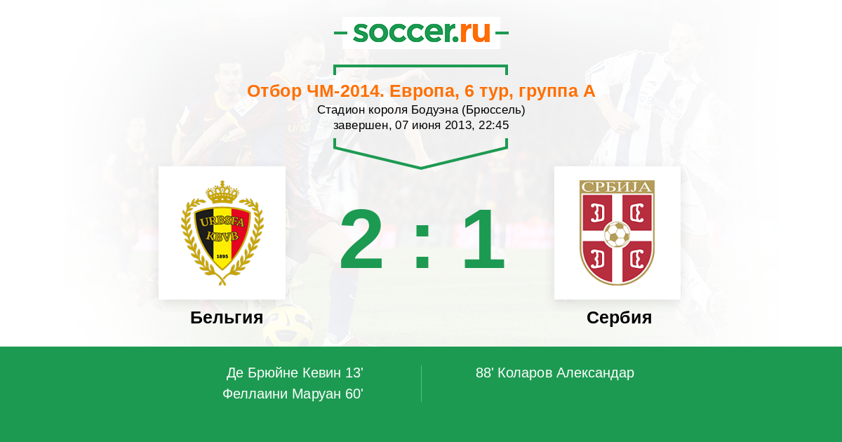 Бельгия - Сербия: обзор матча 7 июня 2013