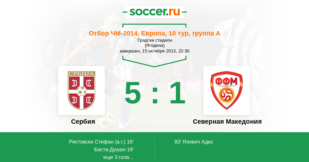 Сербия - Северная Македония: обзор матча 15 октября 2013