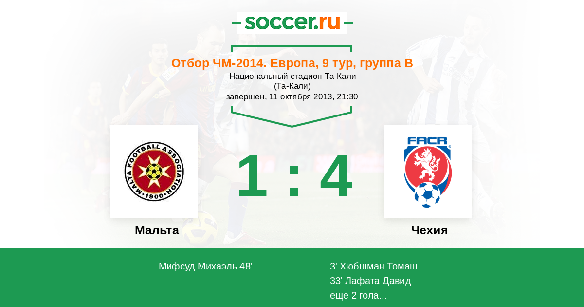Мальта - Чехия: обзор матча 11 октября 2013