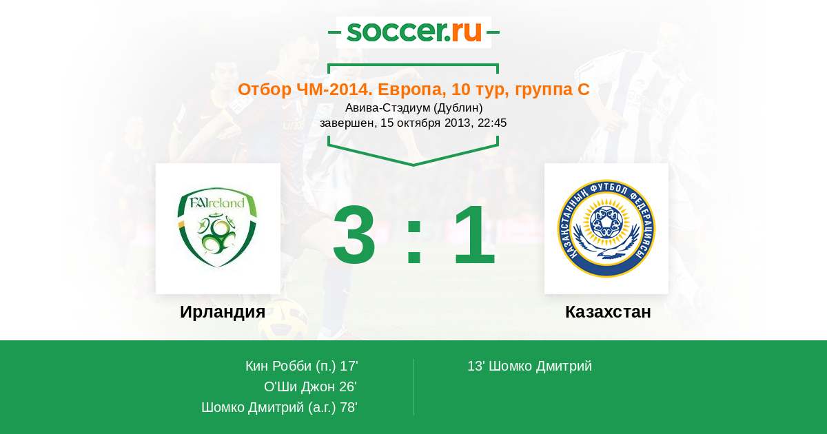 Ирландия - Казахстан: обзор матча 15 октября 2013