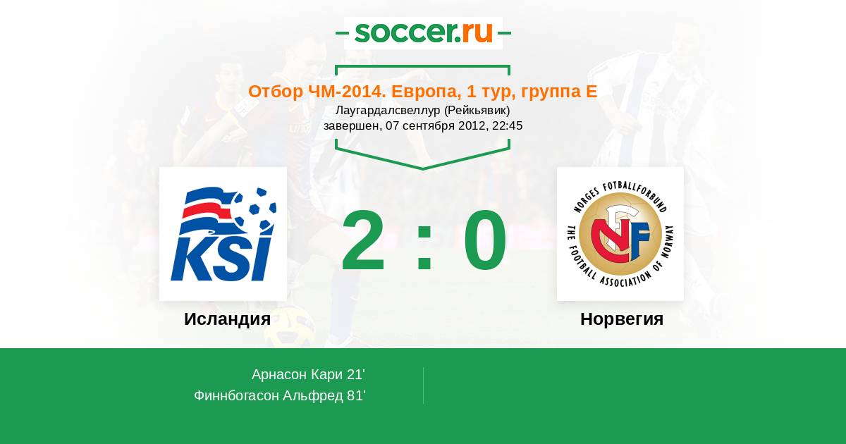 Исландия - Норвегия: обзор матча 7 сентября 2012