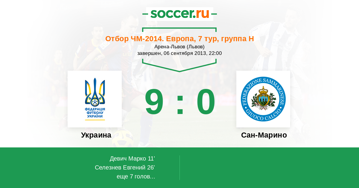 Украина - Сан-Марино: обзор матча 6 сентября 2013