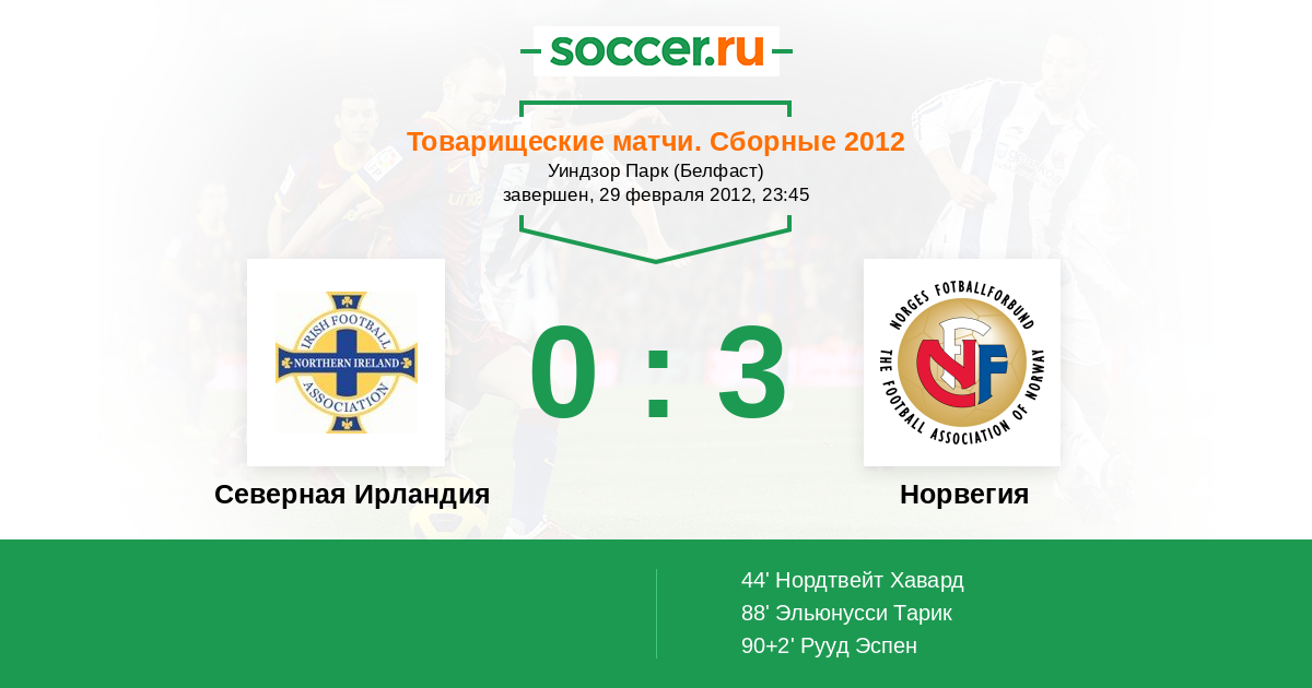 Северная Ирландия - Норвегия: обзор матча 29 февраля 2012