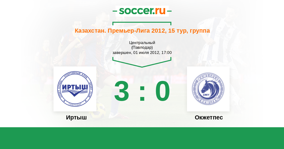 Иртыш - Окжетпес: обзор матча 1 июля 2012