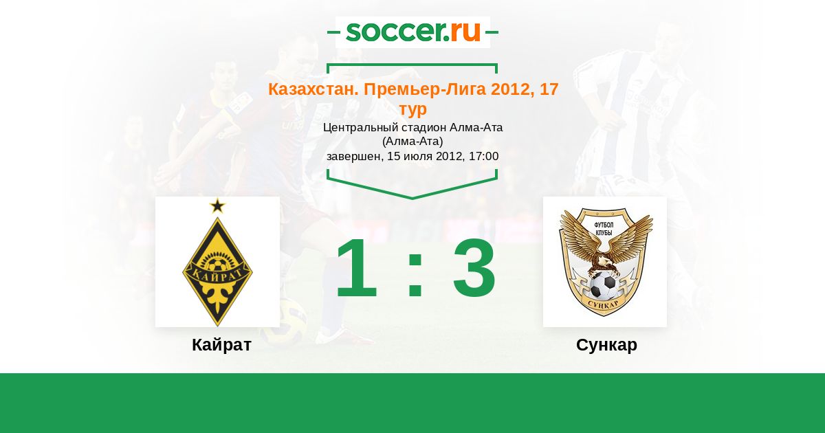 Кайрат - Сункар: обзор матча 15 июля 2012