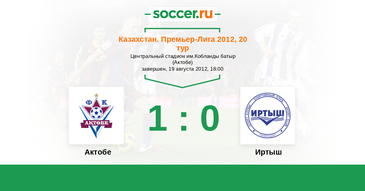 Актобе - Иртыш: обзор матча 19 августа 2012