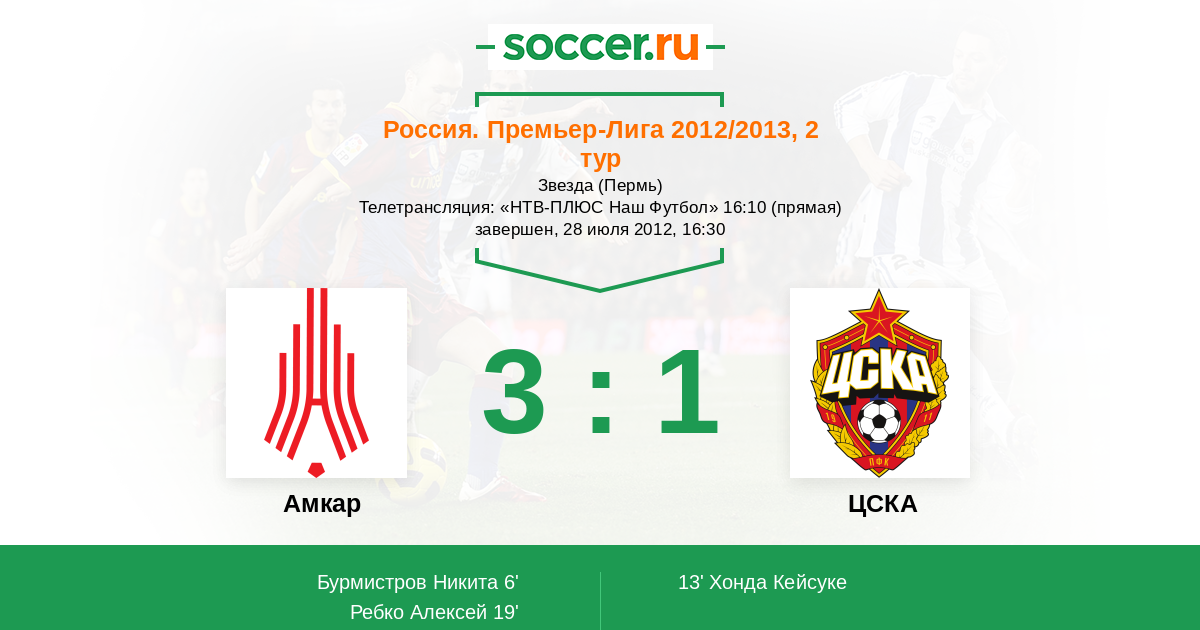 Амкар - ЦСКА: обзор матча 28 июля 2012