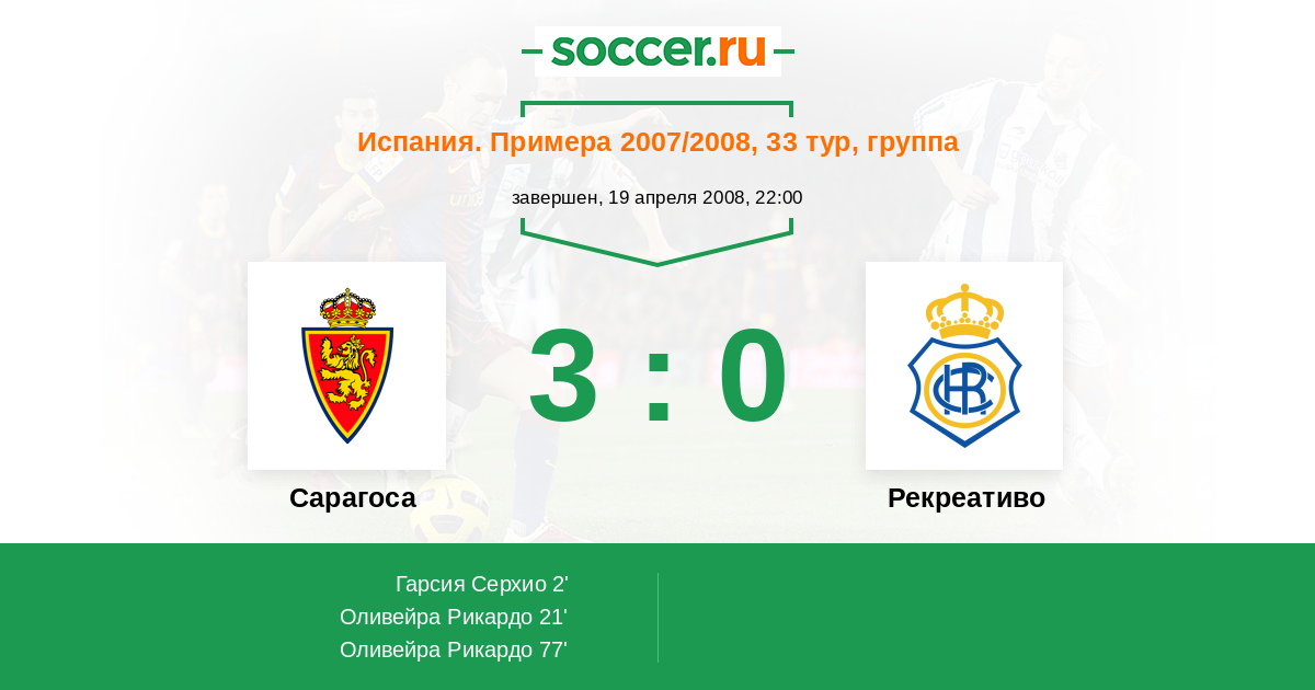 Сарагоса - Рекреативо: обзор матча 19 апреля 2008