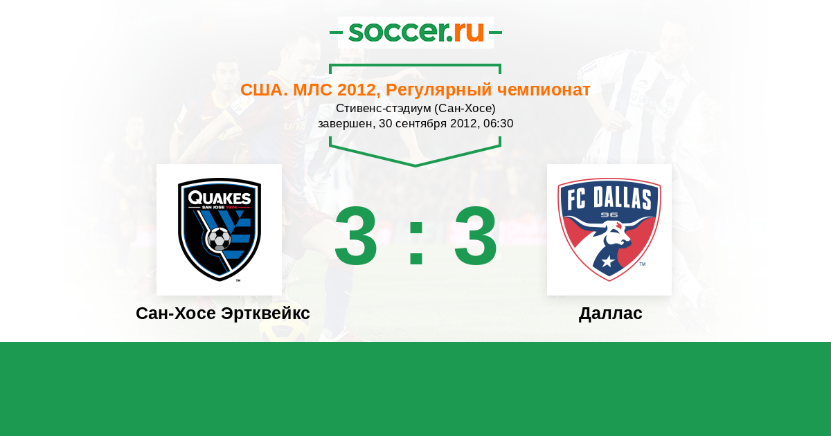 Сан-Хосе Эртквейкс - Даллас: обзор матча 30 сентября 2012