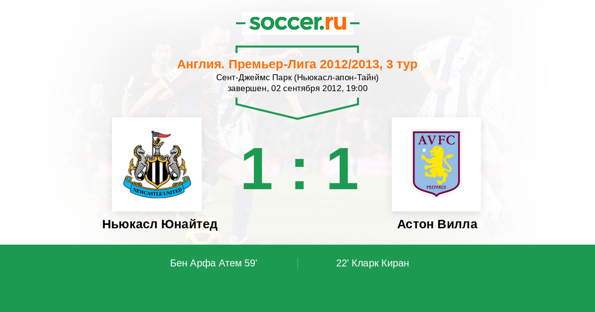 Ньюкасл Юнайтед - Астон Вилла: обзор матча 2 сентября 2012