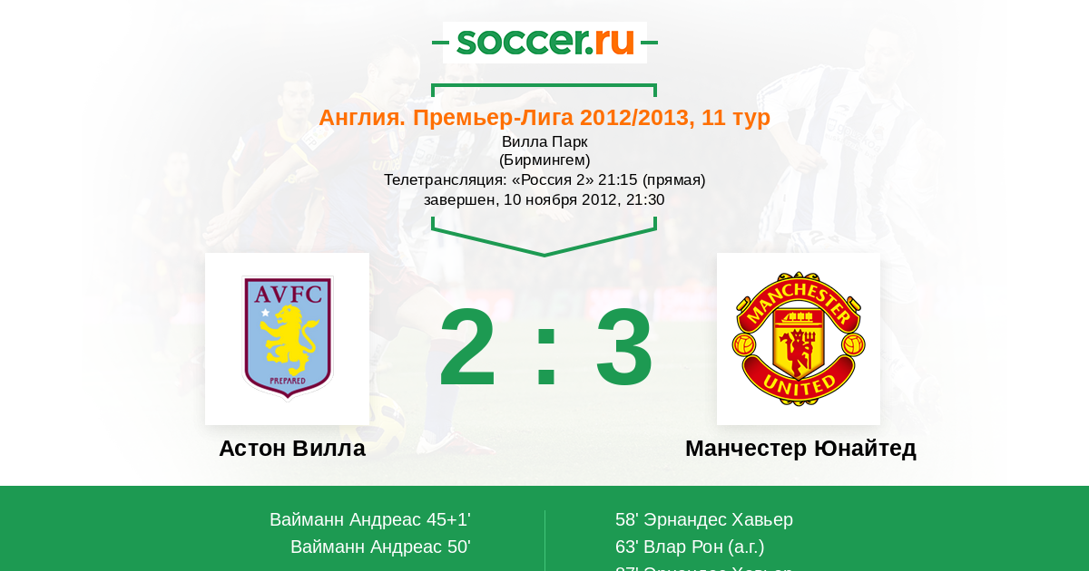 Астон Вилла - Манчестер Юнайтед: обзор матча 10 ноября 2012
