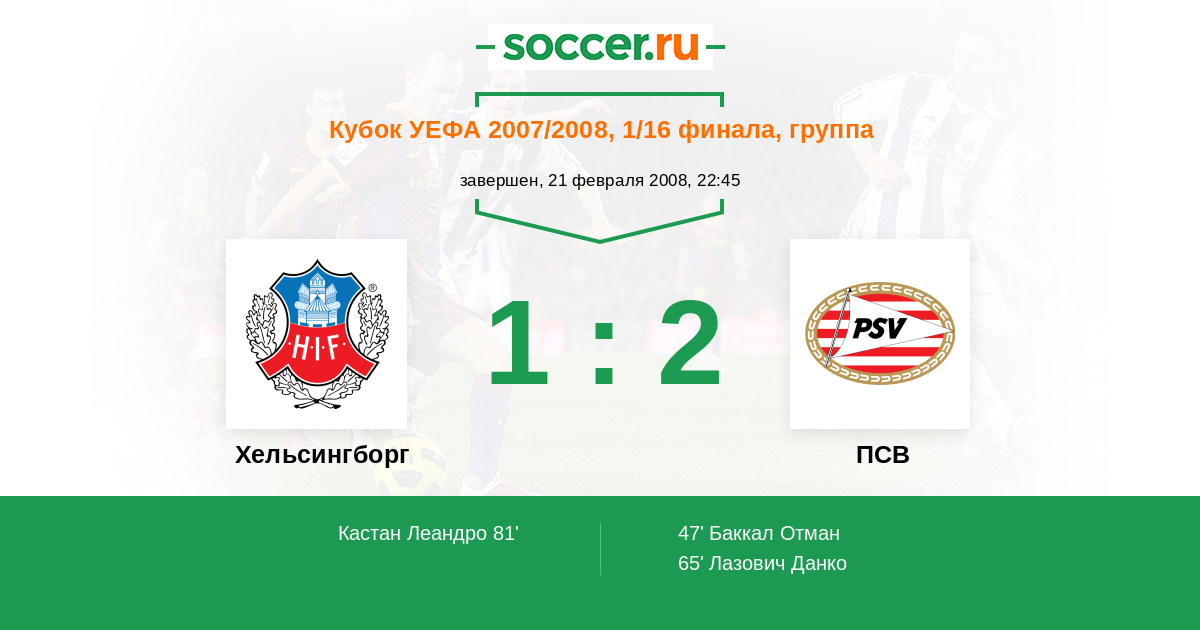 Хельсингборг - ПСВ: обзор матча 21 февраля 2008