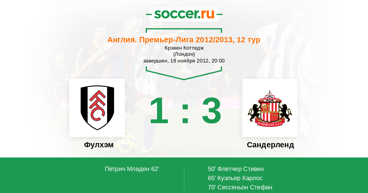 Фулхэм - Сандерленд: обзор матча 18 ноября 2012