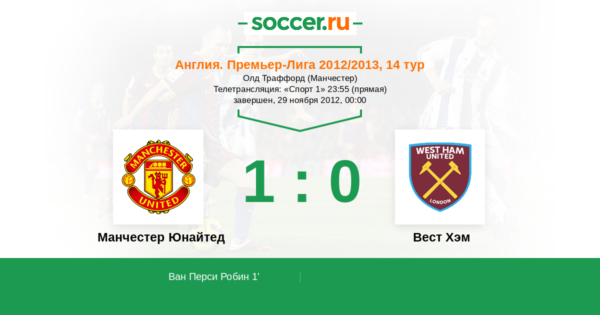 Манчестер Юнайтед - Вест Хэм: обзор матча 29 ноября 2012