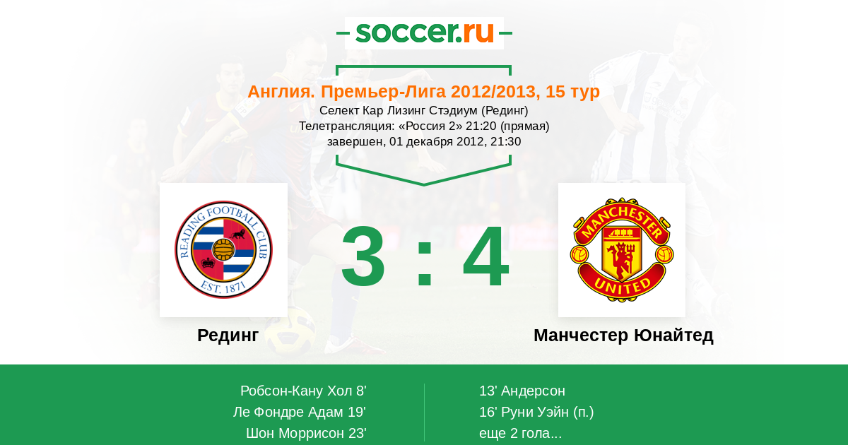 Рединг - Манчестер Юнайтед: обзор матча 1 декабря 2012