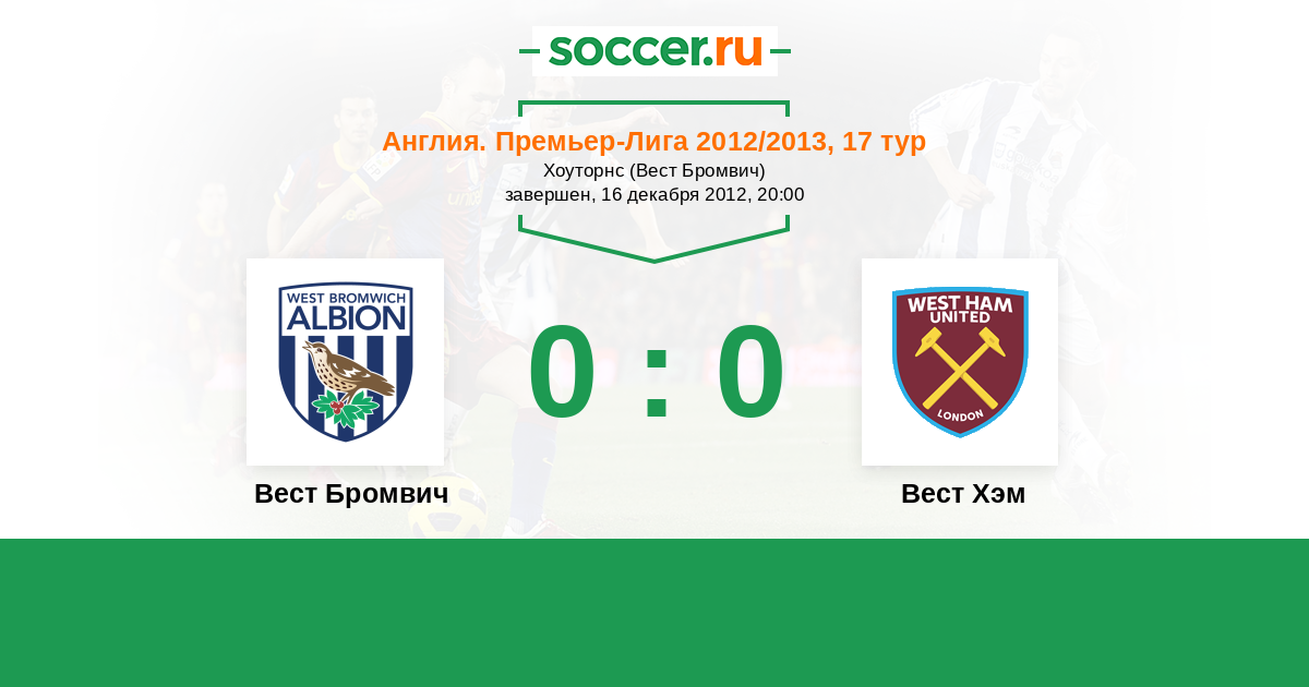 Вест Бромвич - Вест Хэм: обзор матча 16 декабря 2012