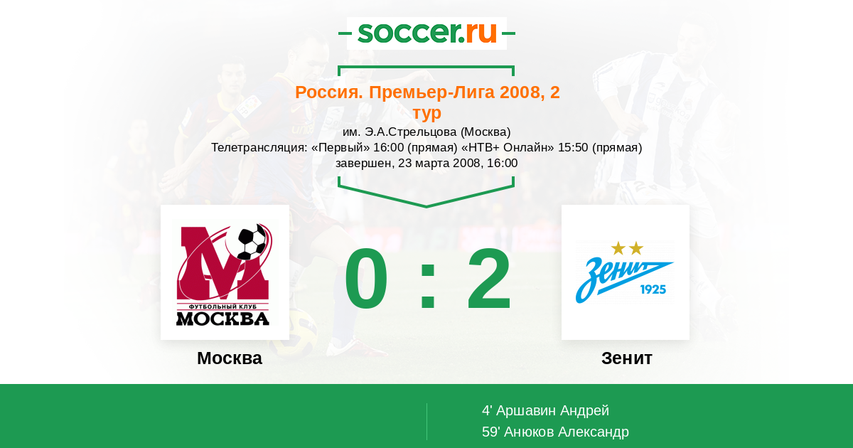 ФК Москва - Зенит: обзор матча 23 марта 2008