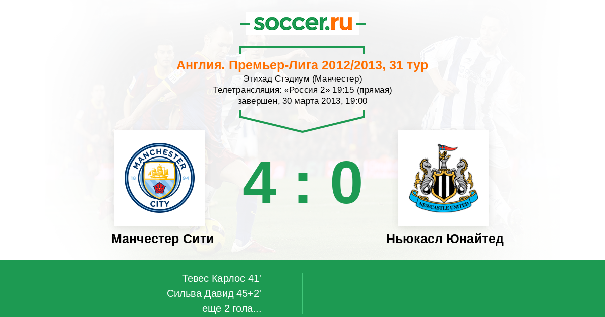 Манчестер Сити - Ньюкасл Юнайтед: обзор матча 30 марта 2013