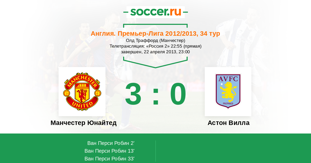 Манчестер Юнайтед - Астон Вилла: обзор матча 22 апреля 2013