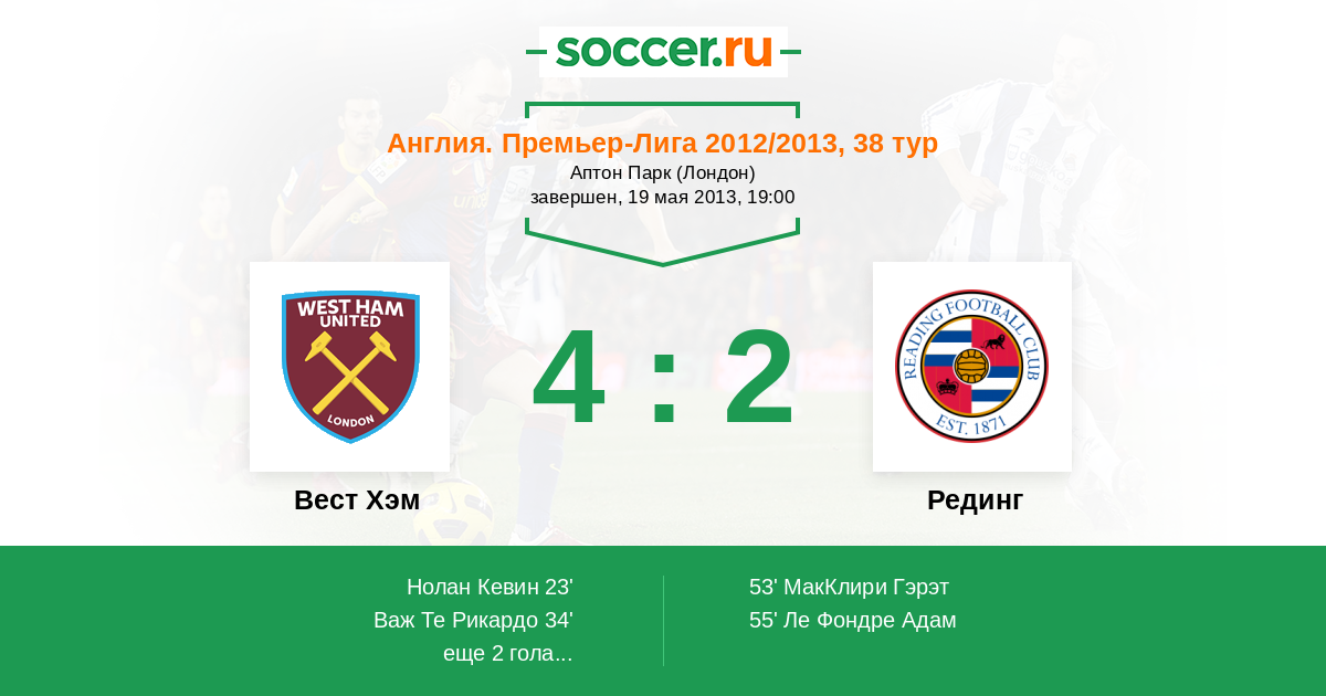 Вест Хэм - Рединг: обзор матча 19 мая 2013