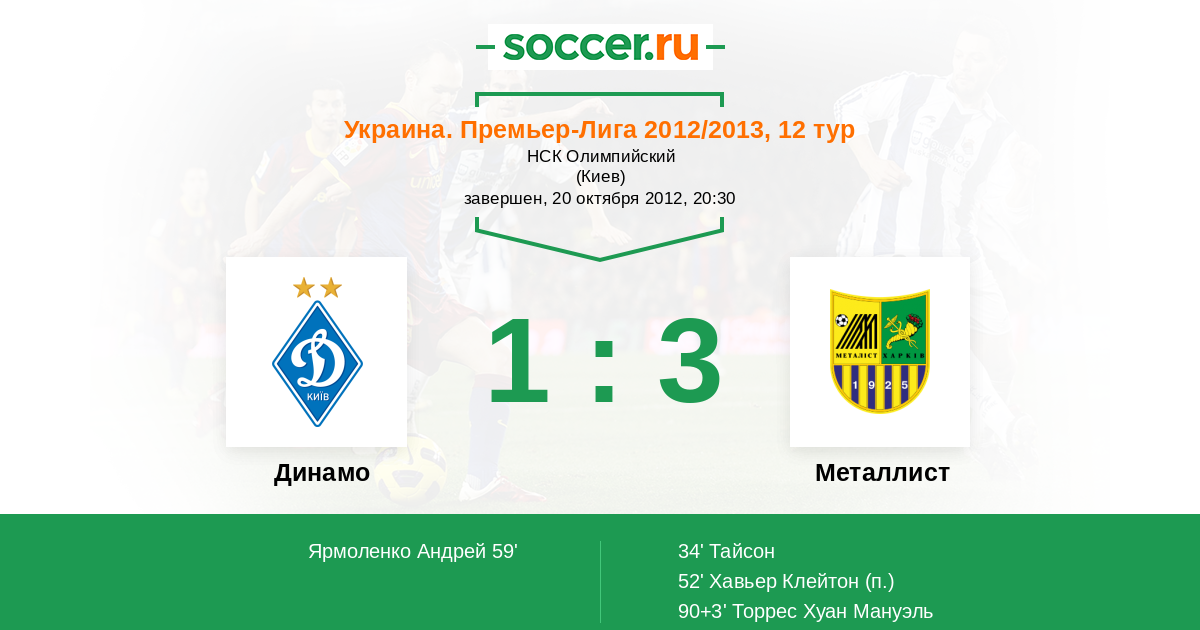 Динамо - Металлист : обзор матча 20 октября 2012