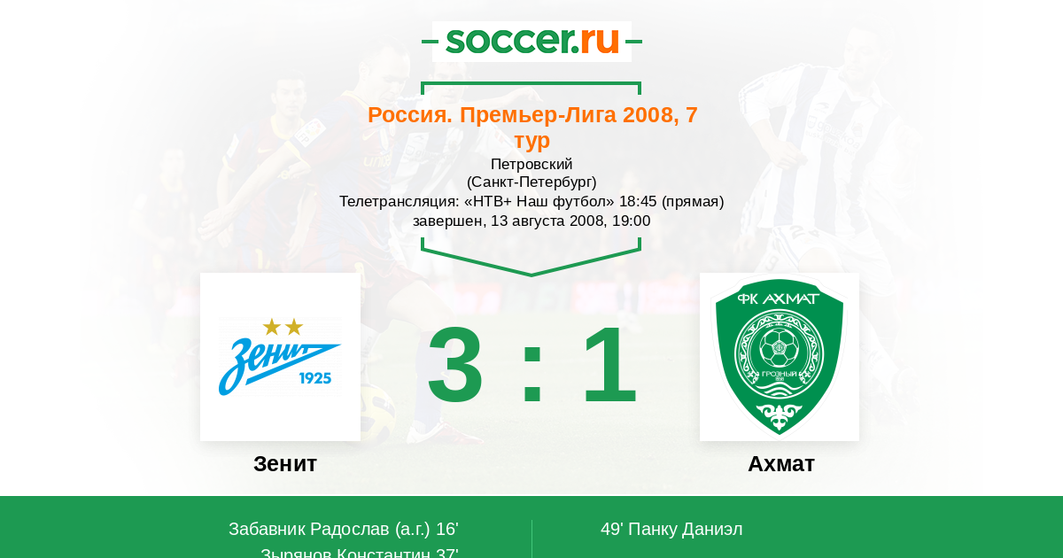Зенит - Терек: обзор матча 13 августа 2008