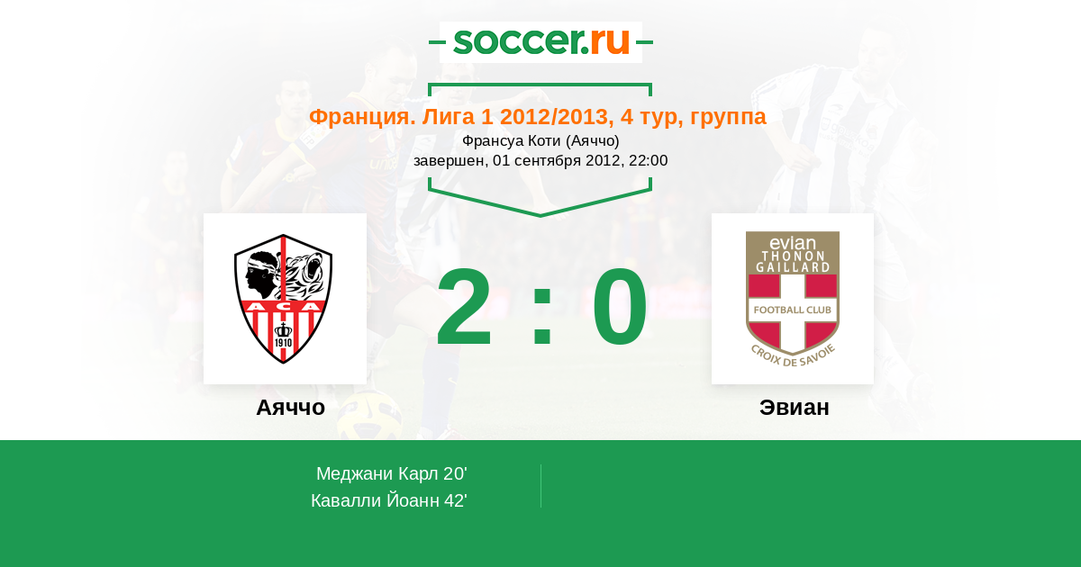 Аяччо - Эвиан: обзор матча 1 сентября 2012