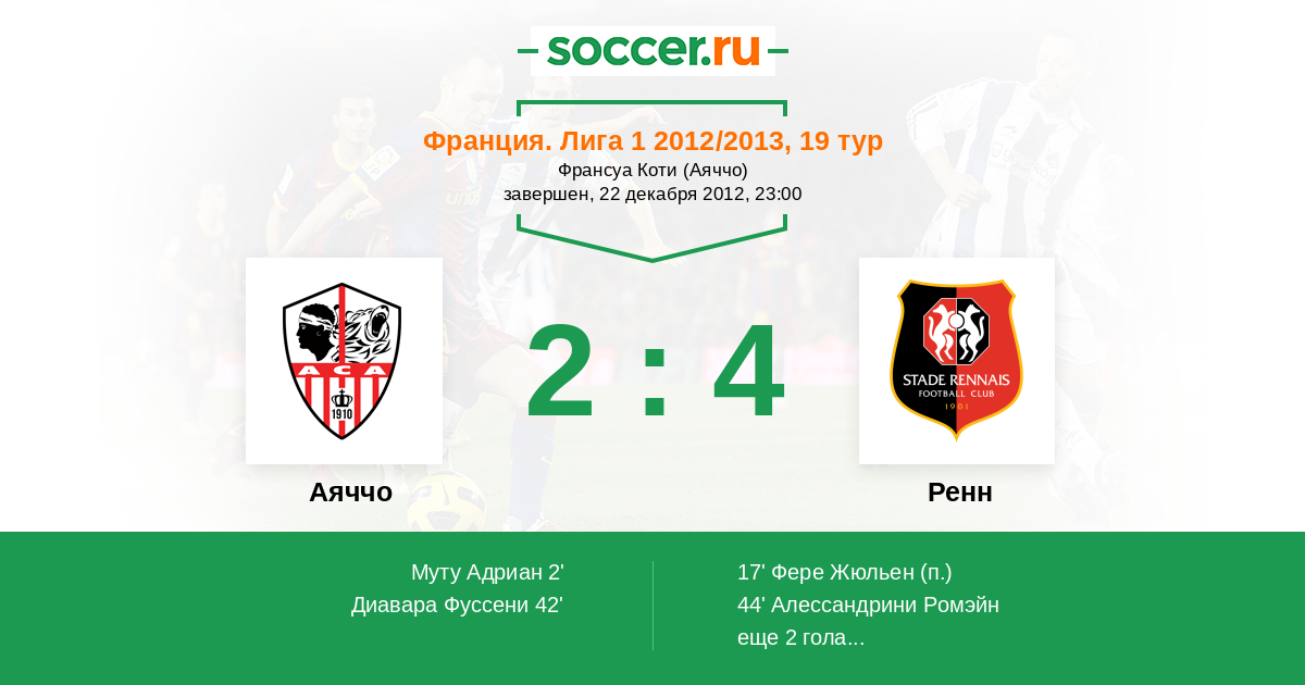 Аяччо - Ренн: обзор матча 22 декабря 2012