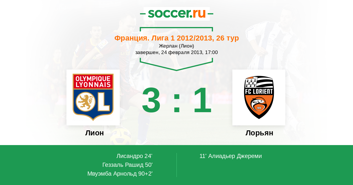Лион - Лорьян: обзор матча 24 февраля 2013