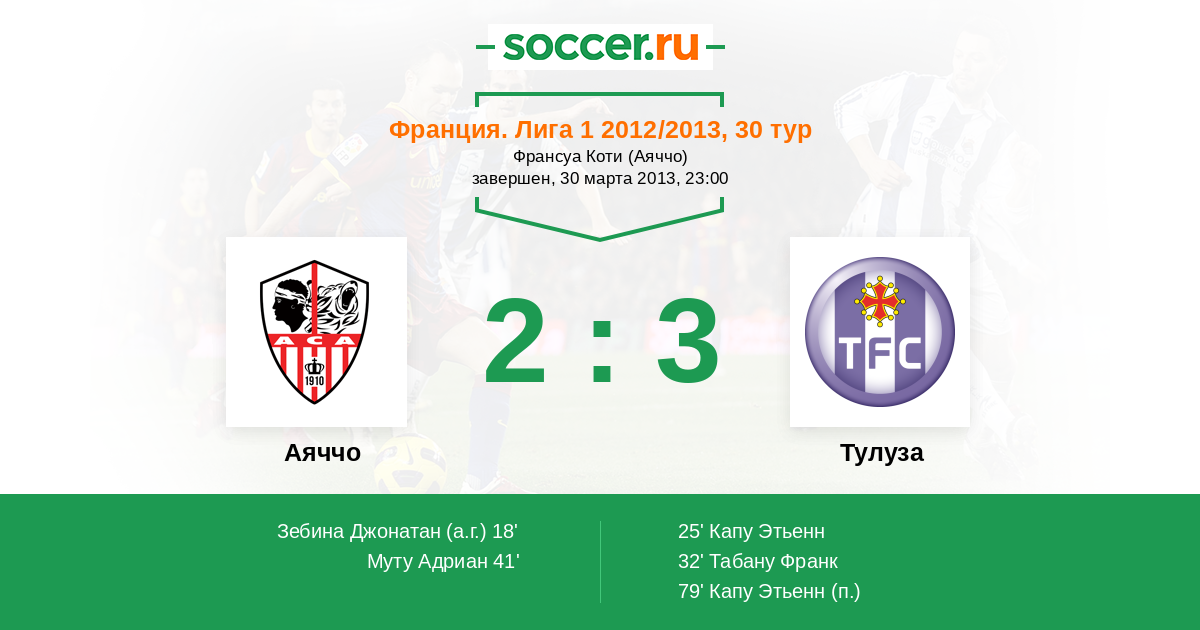 Аяччо - Тулуза: обзор матча 30 марта 2013