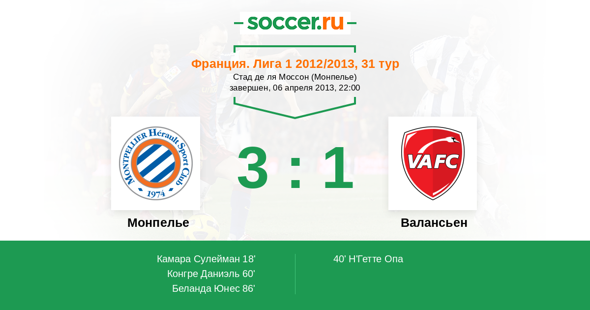 Монпелье - Валансьен: обзор матча 6 апреля 2013