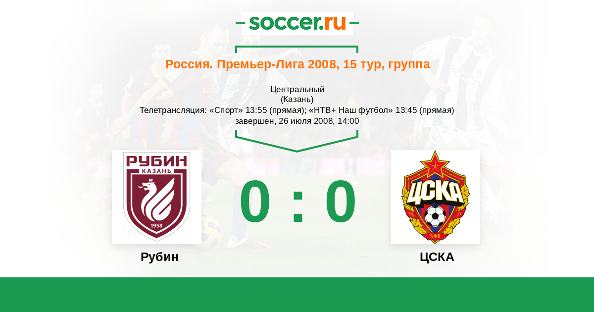 Казань, Центральный Телетрансляция: "Спорт" 13:55 (прямая); "НТВ+ Наш футбол" 13:45 (прямая)