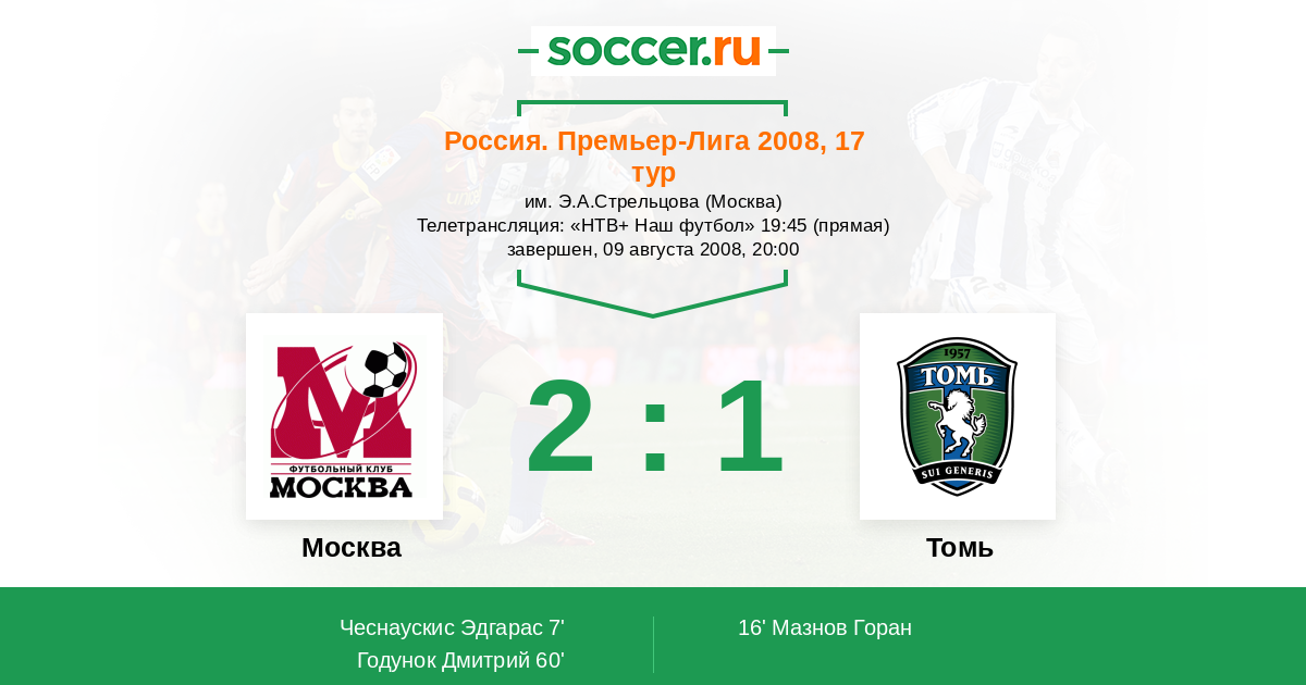 ФК Москва - Томь: обзор матча 9 августа 2008